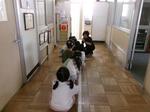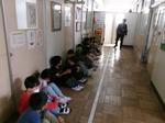 校長室の前の廊下に子どもたちが座っているので何かなと思ったら、隣の放送室で2年生が聴力検査を行っていました。