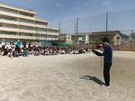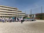 1次避難が終わった後、2次避難として「校庭に避難しなさい。」の放送があってから、校舎から校庭まで全児童が出てくるのに3分、「お・か・し・も」の約束を守って、とてもすばやく、静かに避難ができていて1回目にしてはとても良かったです。