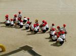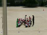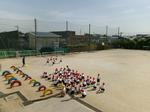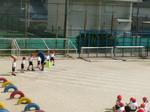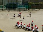 走った後はコーンの後ろに並びます。もう運動会の練習のようでしたね。この後は、トラック半周の記録を取りました。