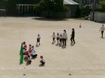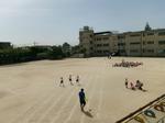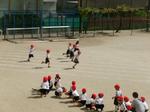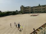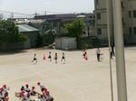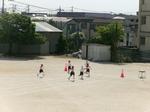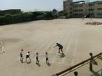 今日の1時間目は、校庭で1年生が50m走の記録を取りました。コースに一人ずつ入って走ります。まっすぐに走れる子が多かったです。