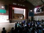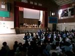 今日の3時間目に体育館で1年生を迎える会を行いました。1年生は6年生と手をつないで入場し、段の上で6年生に名前を呼んでもらい、「はい」と大きな声で返事をして、花のアーチをくぐりました。会では、校歌斉唱で始まり、歓迎の言葉や各学年からのメッセージの後、6年生から楽しい劇の発表がありました。矢切小についてのクイズも盛り込まれています。矢切小の子は、楽しい、面白いことが大好きなようでした。30年前の子どもたちも楽しい劇を林間学園や修学旅行、クラブ発表会でも行っていましたから、矢切小のDNAが繋がって残っているようです。その後、2年生からプレゼントをもらい、1年生は元気な歌をお礼に送りました。全校児童が初めて体育館に集まった1日でした。これからの生活も元気いっぱい頑張ってください。