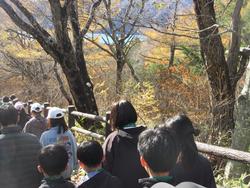 ●写真1枚目…竜頭の滝を右手に見ながら坂を下っています。●写真2枚目…竜頭の滝を下から見上げています。●写真3枚目…日本三大名瀑の一つである華厳の滝。紅葉もピークを迎えていました。