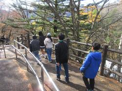 ●写真1枚目…源泉を間近で見ています。●写真2枚目…竜頭の滝に到着しました。●写真3枚目…遠くには中禅寺湖が見えてきました。