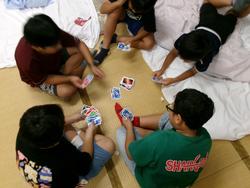 ●写真1枚目・2枚目…昼食の様子です。●写真3枚目…スキマの時間では、部屋でウノを楽しんでいました。