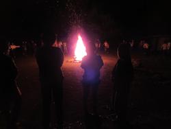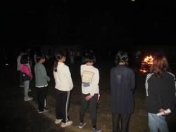 ●写真1枚目…できあがったカレーライスを味わいながら食べています。●写真2枚目・3枚目…キャンプファイヤーでは、歌って、踊って、クイズを楽しみました。