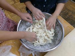 ●写真1枚目・2枚目・3枚目…「こねる」「踏む」の作業を行っています。