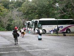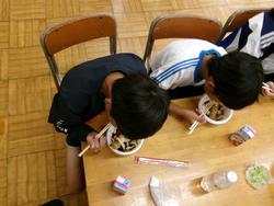 ●写真1枚目…手打ちうどんを味わいながら食べています。●写真2枚目…退所式に臨んでいます。●写真3枚目…さしま少年自然の家での林間学園を終え、バスに乗車しています。