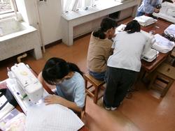 6年生は家庭科の学習でトートバッグを作っています。保護者ボランティアの方々にもご協力いただき、ミシンを使ってすてきな作品を作りあげました。