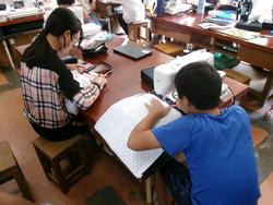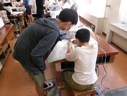 ●写真1枚目・2枚目…協力しながら作業を進めていました。●写真3枚目…できあがった作品を見せてもらいました。