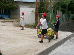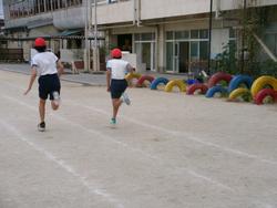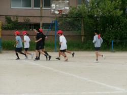 ●写真1枚目…長距離走の練習の様子です。●写真2枚目…走り幅跳びの練習の様子です。●写真3枚目…ボール投げの練習の様子です。