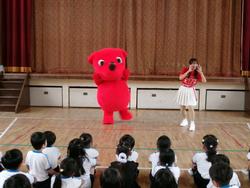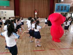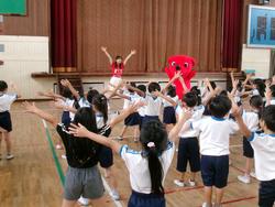 本日、矢切小学校に千葉県のマスコットキャラクターのチーバくんがやってきました。1,2年生はチーバくんと一緒にクイズやジャンケン、ダンスを楽しみました。