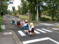 今月、1年生はクラス毎にユーカリ交通公園を訪れ、交通安全教室に参加しています。横断歩道を渡ったり、ゴーカートに乗ったりしながら交通ルールを学びました。