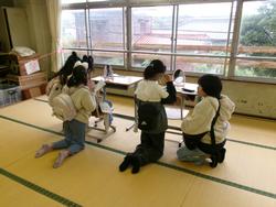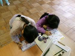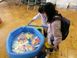 ●写真1枚目…カードに答えを記入しています。●写真2枚目…フォトルームでは鏡を見ながら…。●写真3枚目…魚釣りゲームに挑戦しています。