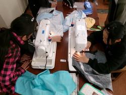 5年生は家庭科の学習でエプロンを制作しています。保護者ボランティアの方々にもご協力いただき、ミシンを使ってすてきな作品作りに励んでいます。できあがったエプロンは今後の調子実習で着用します。