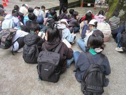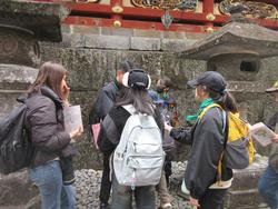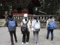 ●写真1枚目…続々とチェックポイントに子どもたちが集まってきています。●写真2枚目…五重塔を見上げています。●写真3枚目…東照宮の見学を終えた子どもたちが集合場所に集まってきました。