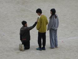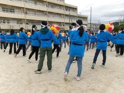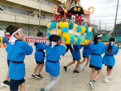 ●写真1枚目…神輿を担いで校庭を1周しています。●写真2枚目…矢切囃子の演奏が収穫祭を盛り上げます。●写真3枚目…最後に全員で花笠音頭を踊りました。