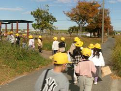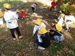 1年生は生活科の学習で坂川親水広場に秋を見つけに出かけました。どんぐりや落ち葉を拾い、学校に持ち帰りました。