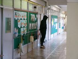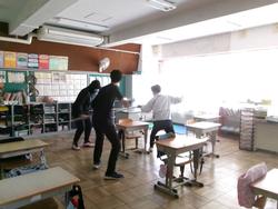 本日、不審者が校舎内に侵入したことを想定しての避難訓練を行いました。子どもたちは教室のドア付近に机や椅子でバリケードを作り、教室の片隅で静かに待つことができました。