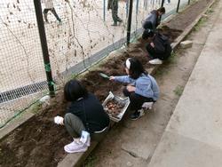 5年生(有志)がチューリップの球根を花壇に植えました。この4月に咲いたチューリップの球根を掘り起こして保管しておいたものを今年も植えてみました。