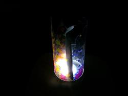 4年生は図画工作科の学習で作ったランプを理科室で点灯しました。色鮮やかな光が室内に輝いていました。