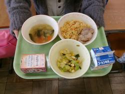 2学期の給食も本日最終日を迎えました。献立は、ピラフ、ハニーチキン、アルファベットスープ、海藻サラダ、ケーキでした。