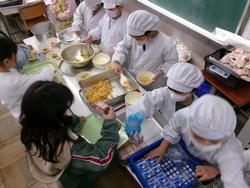 ●写真1枚目…配膳もスムーズです。●写真2枚目・3枚目…味わいながら、今年最後の給食を食べています。