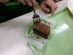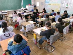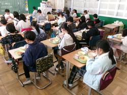 ●写真1枚目…味わいながら、今年最後の給食を食べています。●写真2枚目…ボリューム感のある給食でした。●写真3枚目…子どもたちが楽しみにしていたチョコレートケーキです。