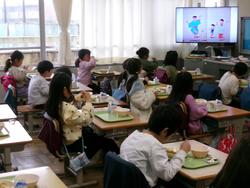 ●写真1枚目・2枚目・3枚目…絵本のお話に耳を傾けながら、給食を食べています。