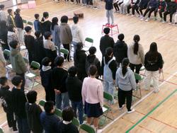 来週に卒業式を控え、本日、予行練習を行いました。5年生は6年生の練習を見学し、1年後の卒業式をイメージすることができました。練習後には5年生から6年生へ、6年生から5年生へと互いにお礼の気持ちを伝え合いました。