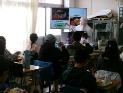 6年生の給食も今日を含めてあと2回となりました。給食の時間に栄養士がお米活動として「郷土料理」について話をしました。