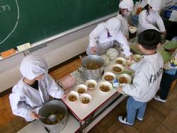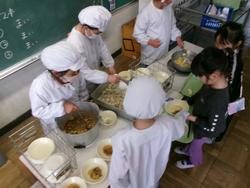 ●写真1枚目・2枚目・3枚目…あっという間の1年間でしたが、1年生も速やかに給食の配膳ができるようになりました。