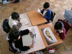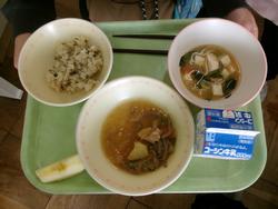 ●写真1枚目…配膳を待っている間、静かに本を読んでいます。●写真2枚目…最後の給食を味わいながら食べています。●写真3枚目…今日の献立は、じゃこごはん、肉じゃが、アサリのみそ汁、りんごでした。