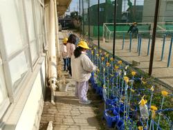 ●写真1枚目…登校すると遊具で遊ぶ子どもたちの姿も見られました。●写真2枚目…1年生はスナップエンドウの水やりを欠かさず行っていました。●写真3枚目…春休みの生活について耳を傾けて話を聞いています。