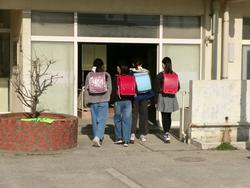 ●写真1枚目・2枚目・3枚目…朝の登校の様子です。昇降口前にはきれいにランドセルが並べられています。