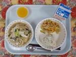 のざわなしらすチャーハン ししゃものごまあげ はるさめサラダ カレースープ オレンジ ぎゅうにゅう |
